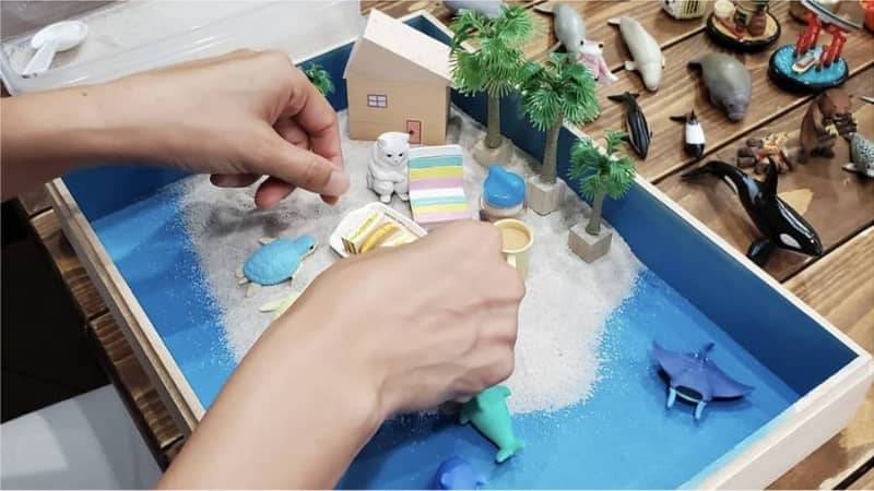 箱庭セラピー 毎月第2日曜“おはなしルーム”では、地域の方やスタッフと自由にお話しができます。